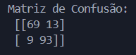- 69 verdadeiros negativos (sem doença corretamente identificados).
