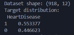 - A base é relativamente balanceada, com cerca de 55,3% dos pacientes apresentando doença cardíaca (